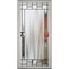 The Portland style strikes an artistic balance between new textures and symmetry. It also offers a high degree of privacy, with only limited clear/beveled glass in the four small squares around the chinchilla textured glass that makes the large center area opaque. Caming available in black zinc (commonly known as lead/patina) or zinc (nickel).