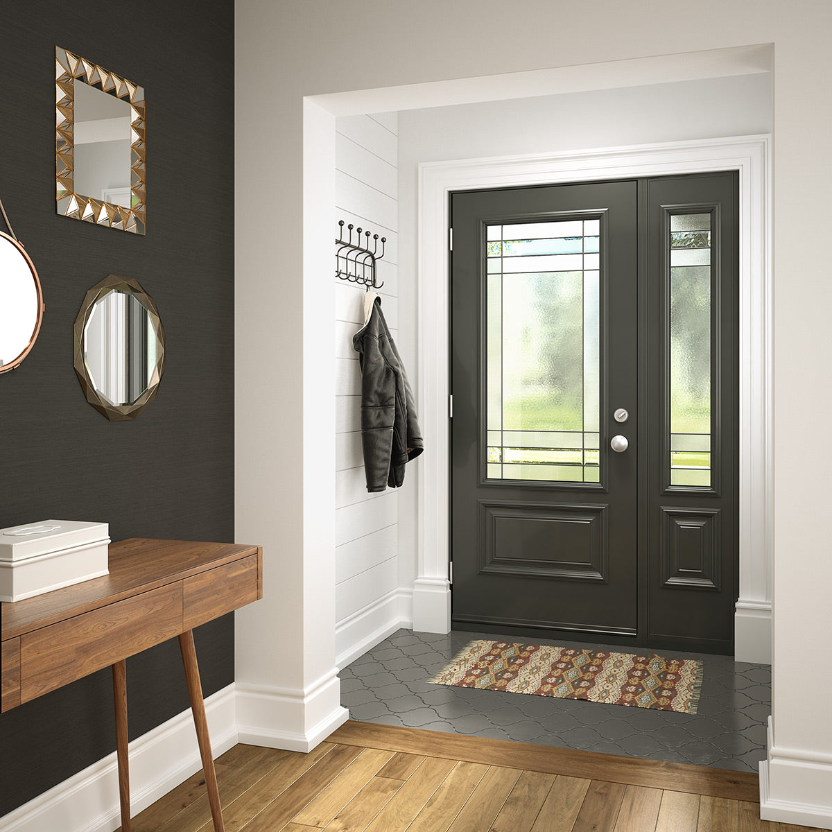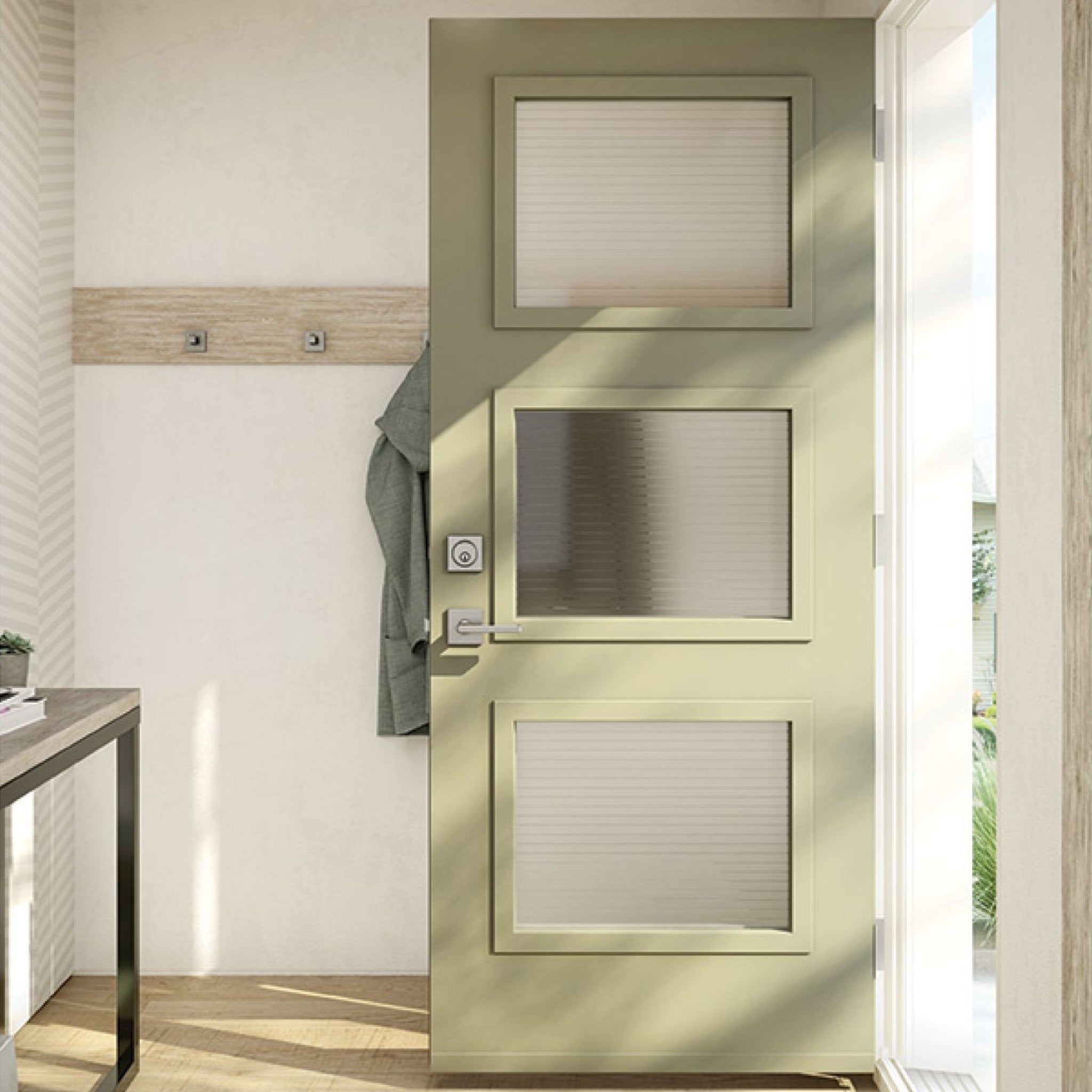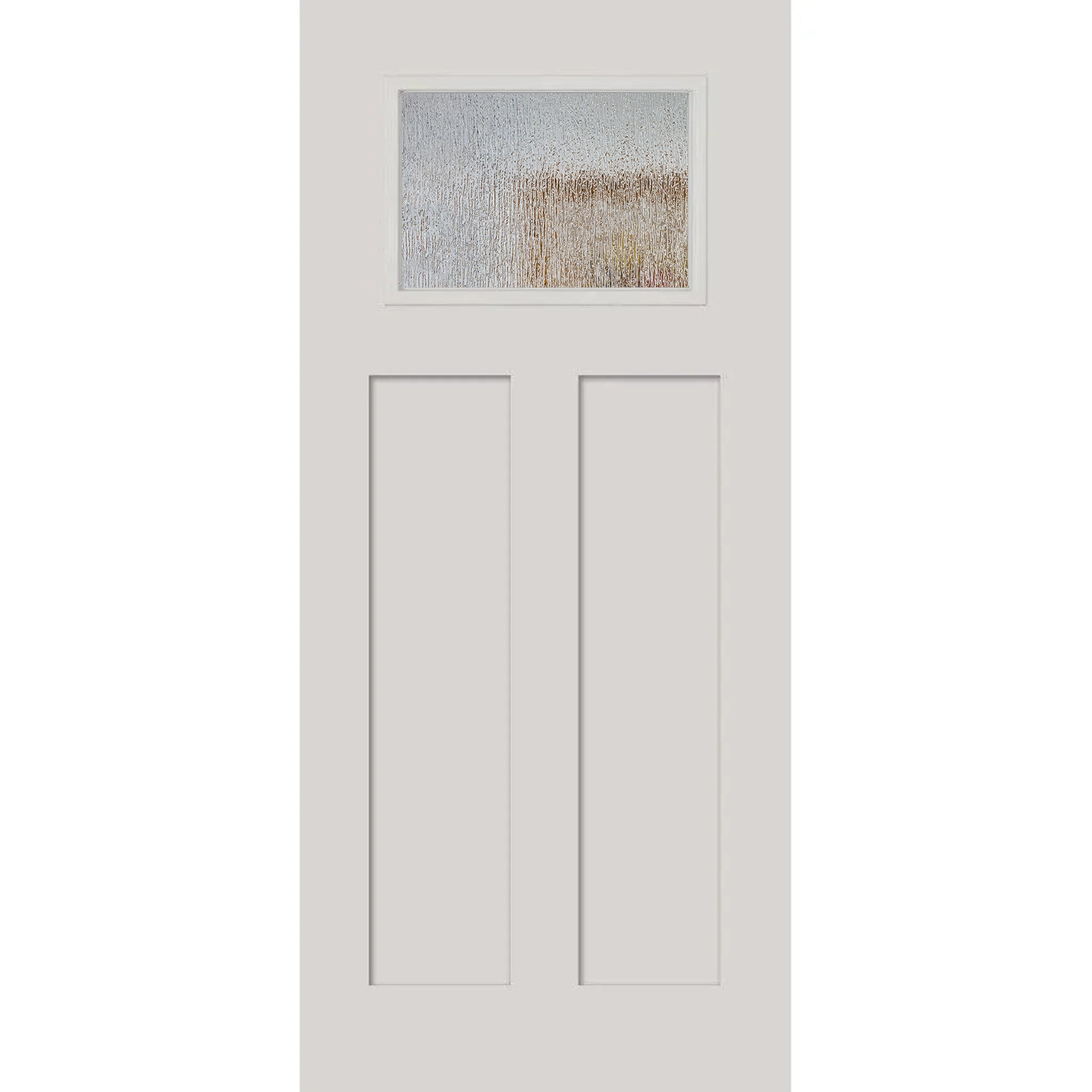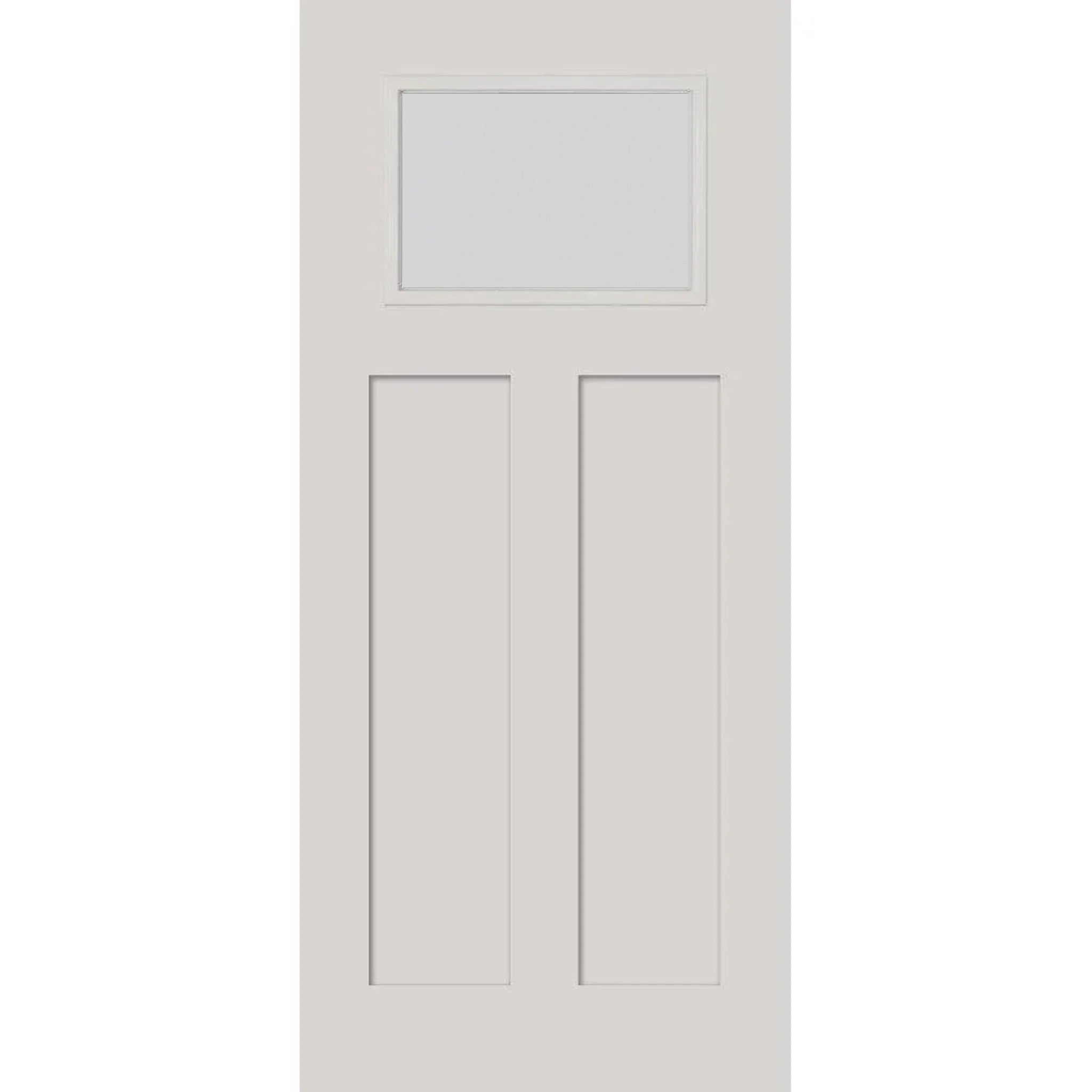 Craftsman style door glass fits into the top panel of a door, typically with two flat profile panels below. It also comes standard with flat profile frames, which add to an overall clean and modern look.