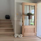 This slab does not include jambs and ships unfinished (see picture with closeup of bevel glass for color of unfinished door).