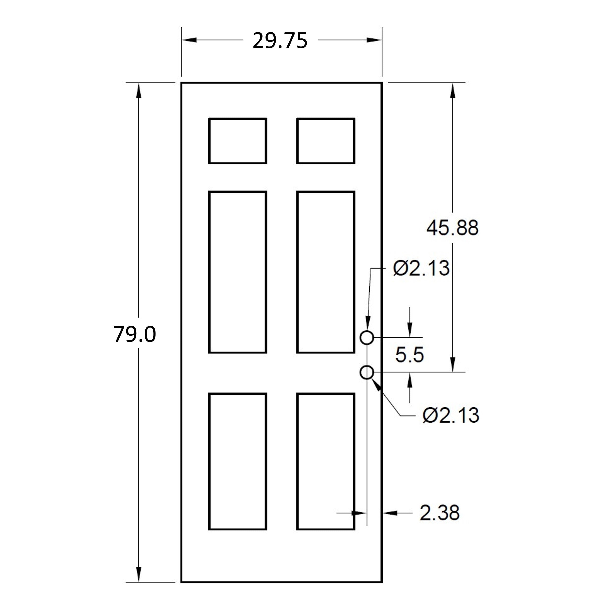 Height: The same is true for height, with most "6/8" or 6ft 8in steel and fiberglass slabs measuring 79.0" or 79.25" tall (not including the rubber sweep on the bottom). 6/8 wood doors are typically a full 80" tall. 8' or 96" tall doors can be special ordered.