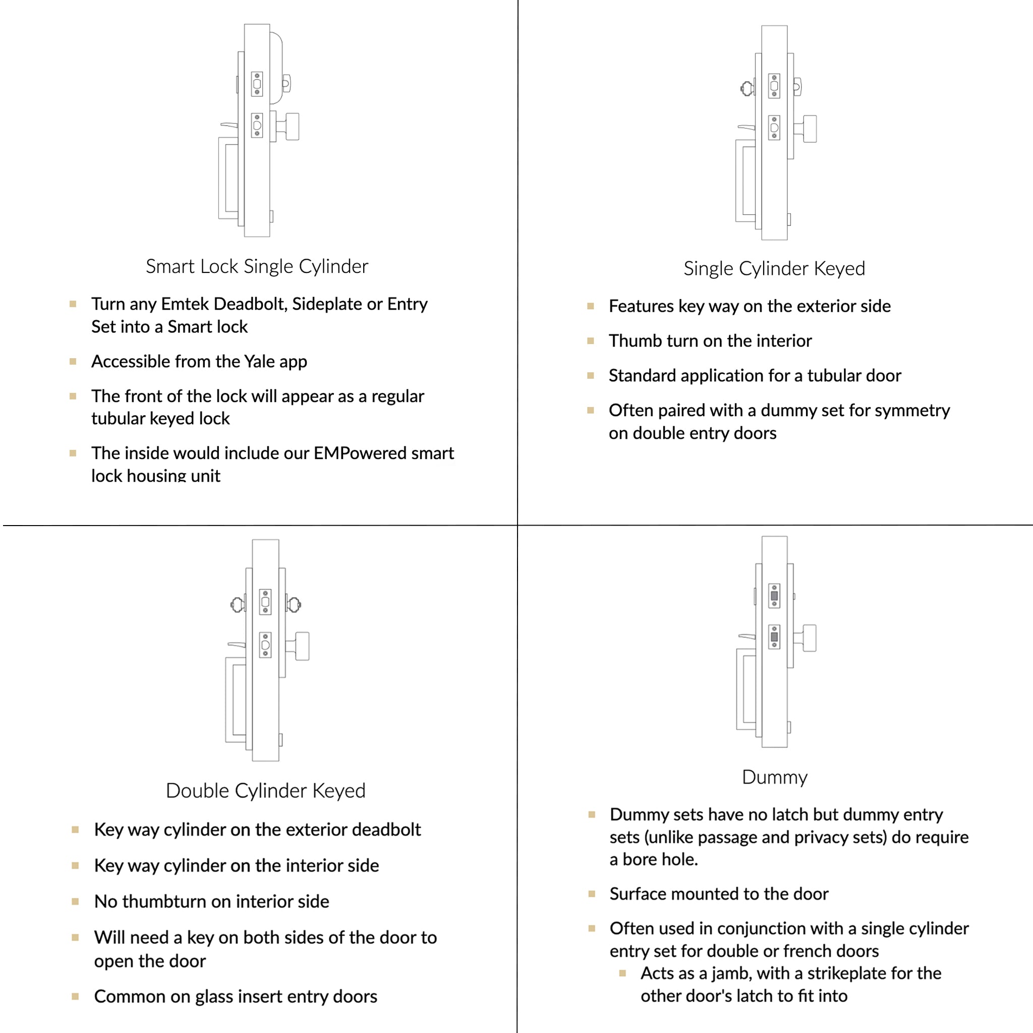 Not sure what you need? Try our lock recommendation tool below or text/email a picture of your existing lockset to 513-871-8907 / info@peasedoors.com