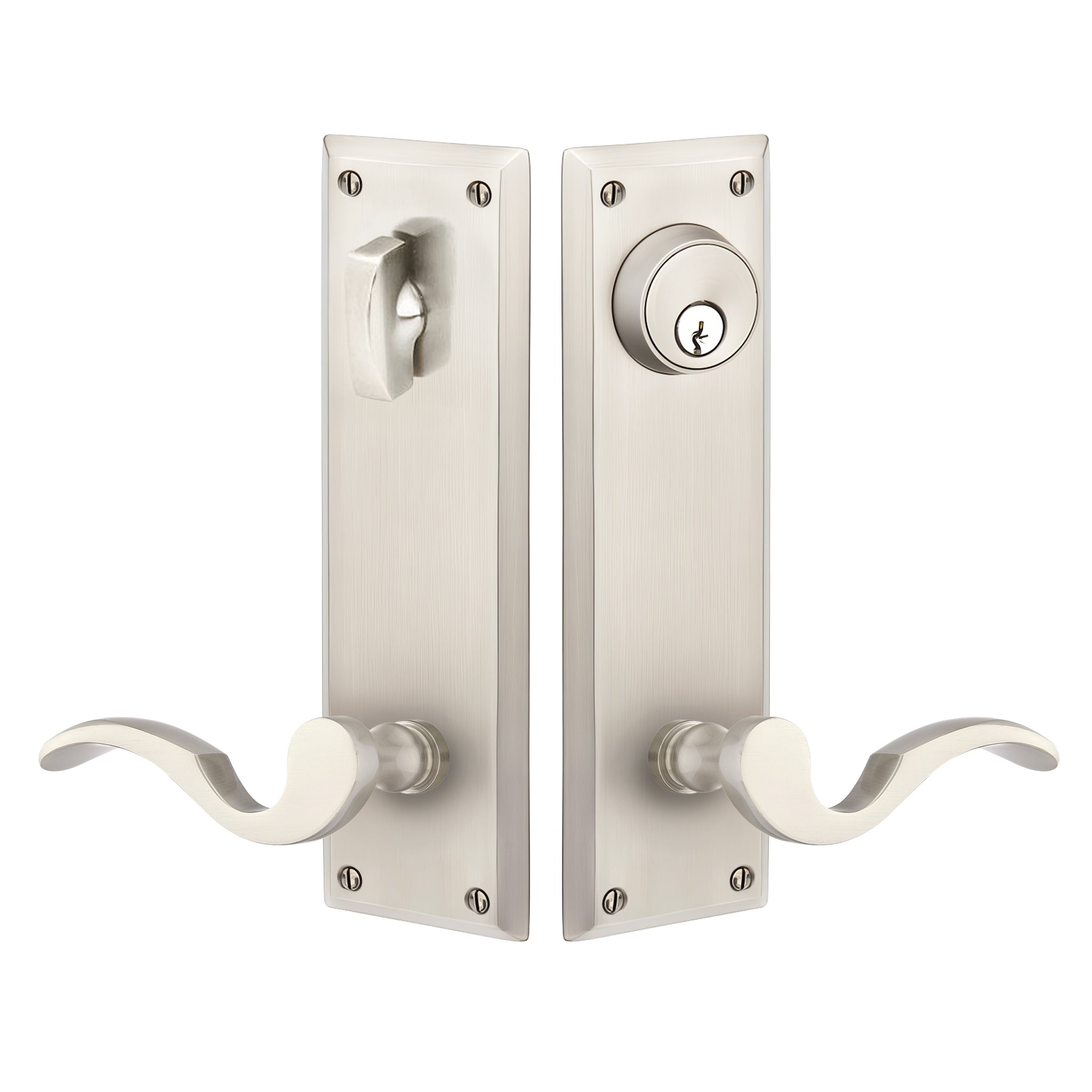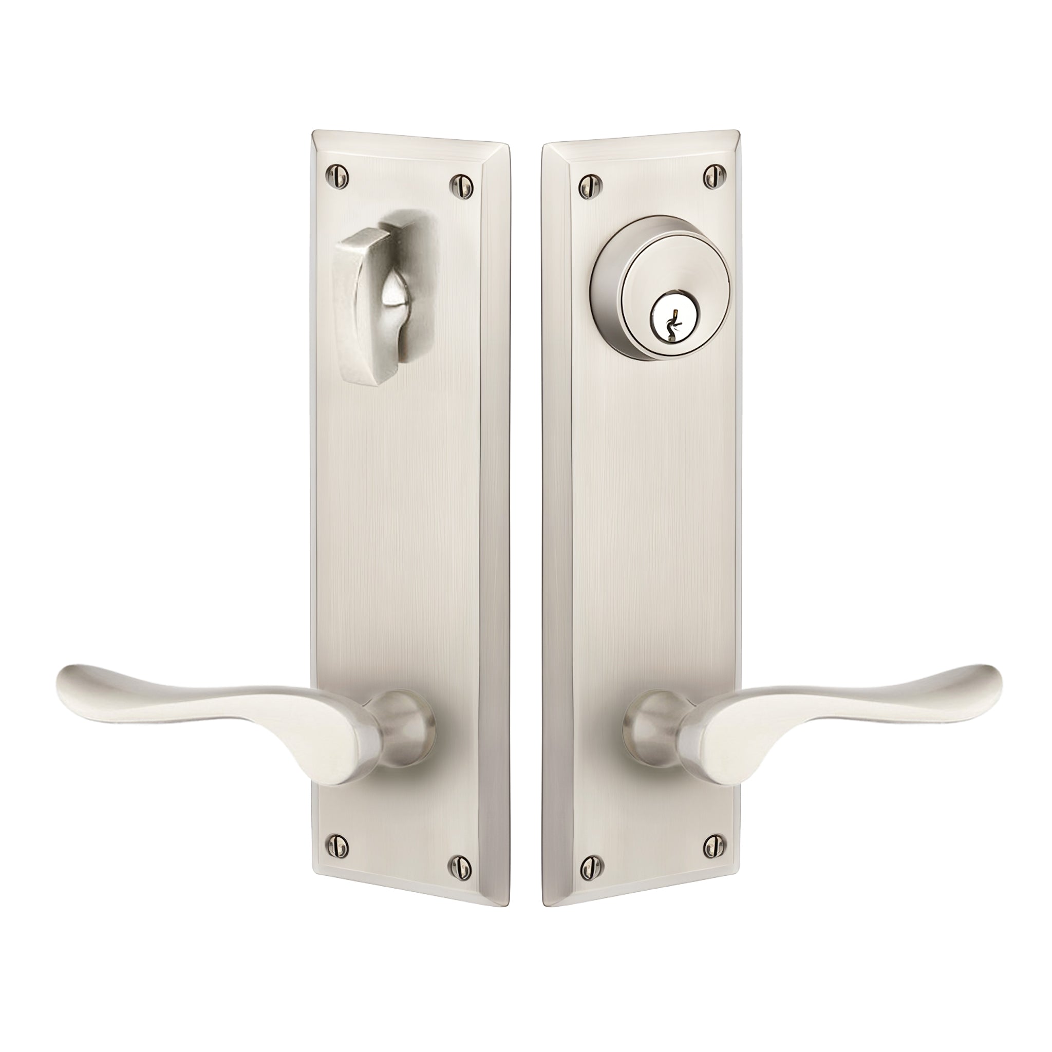 Locksets (also known as entry sets or entry handle sets) replace or upgrade existing locks on Pease, Stanley, Taylor, Mastercraft, Perma Door, Castlegate, Masonite, Therma Tru, Jeld-Wen, and many others door brands.