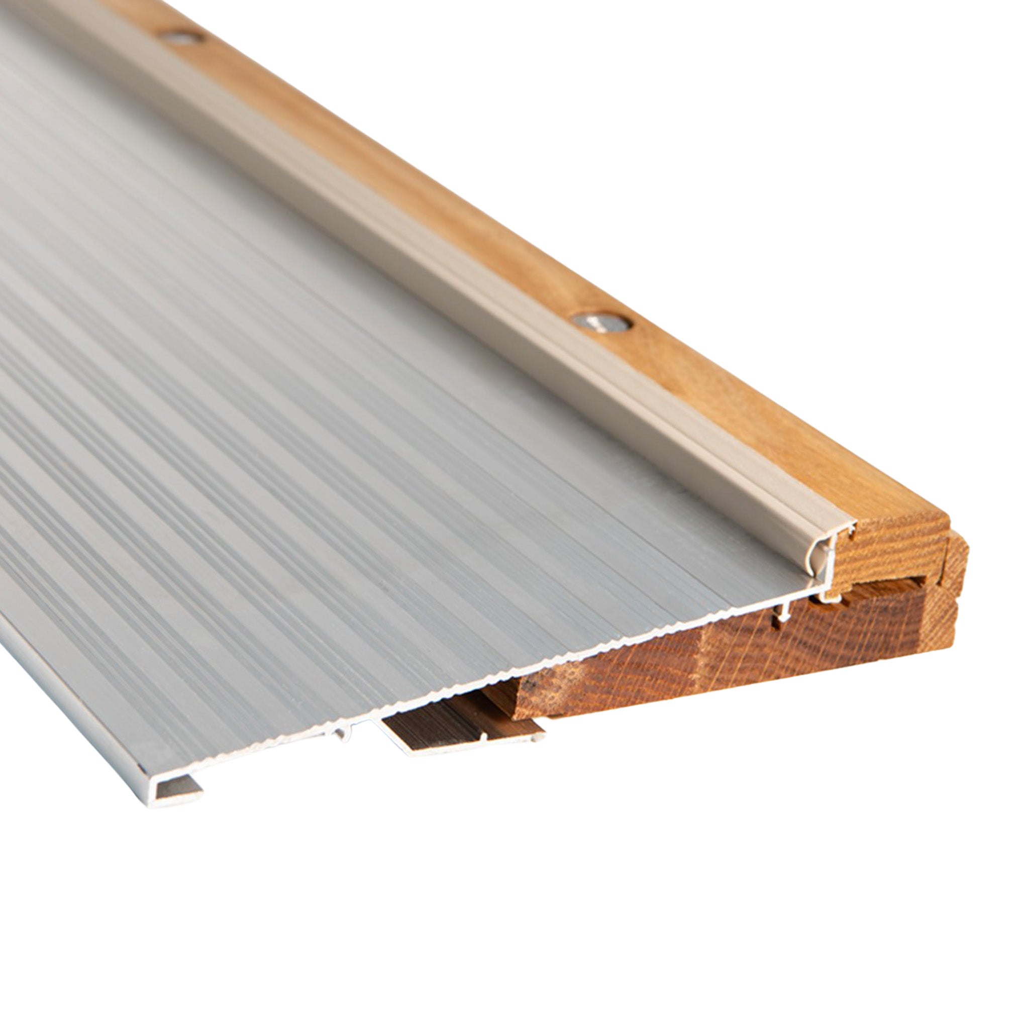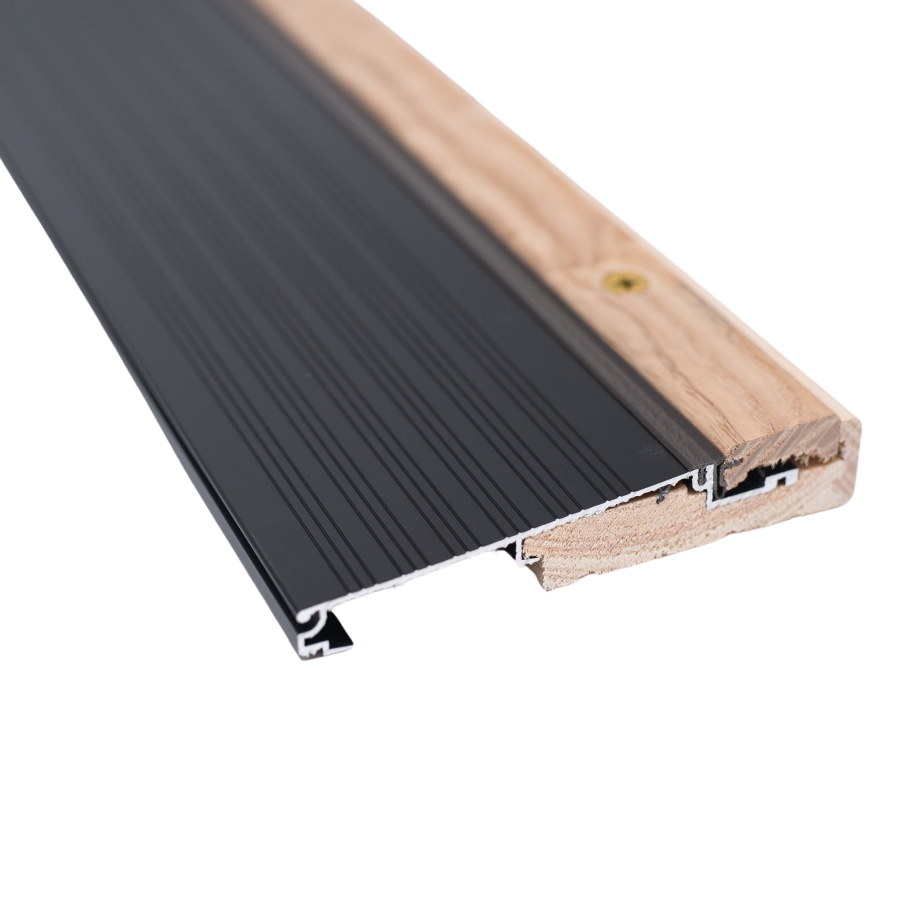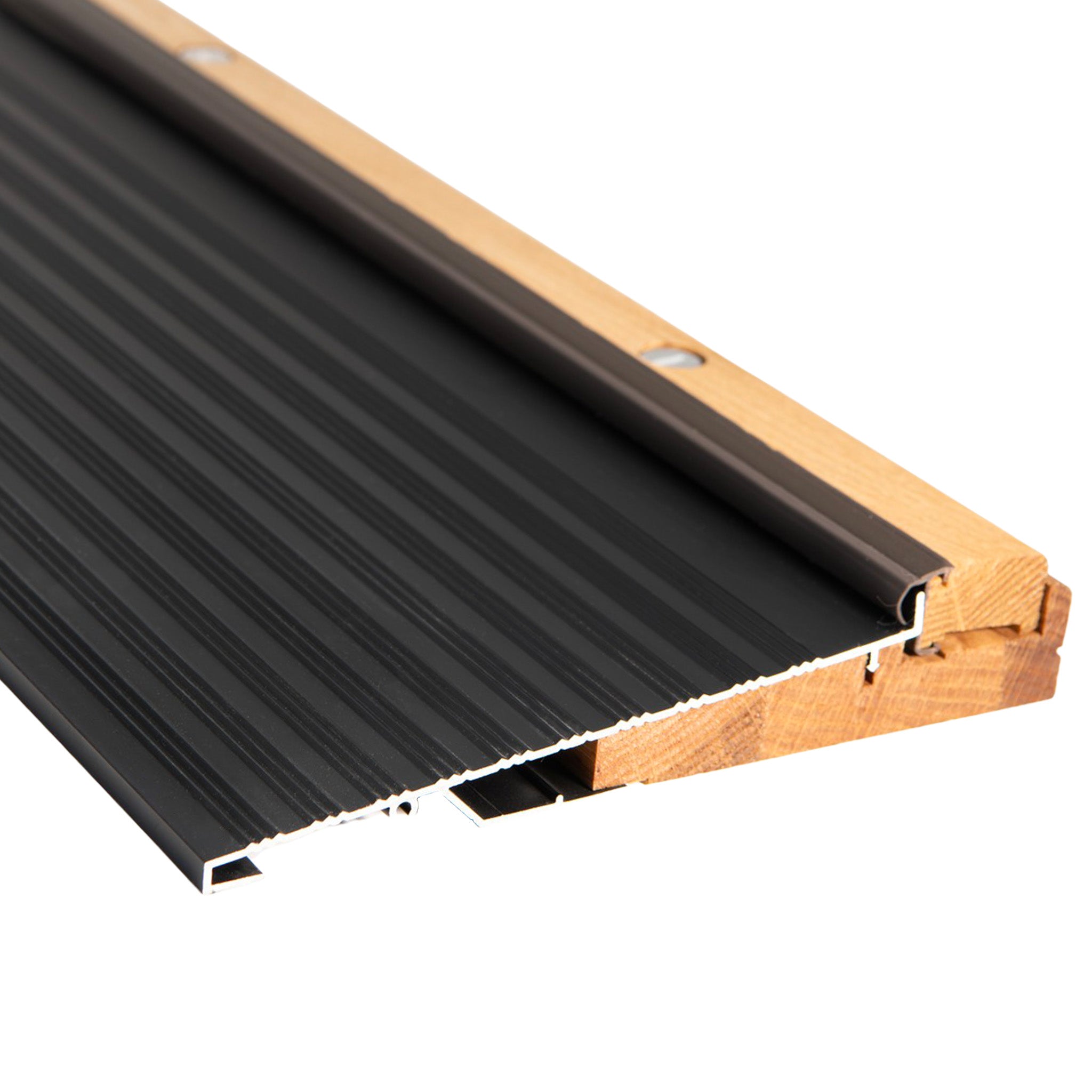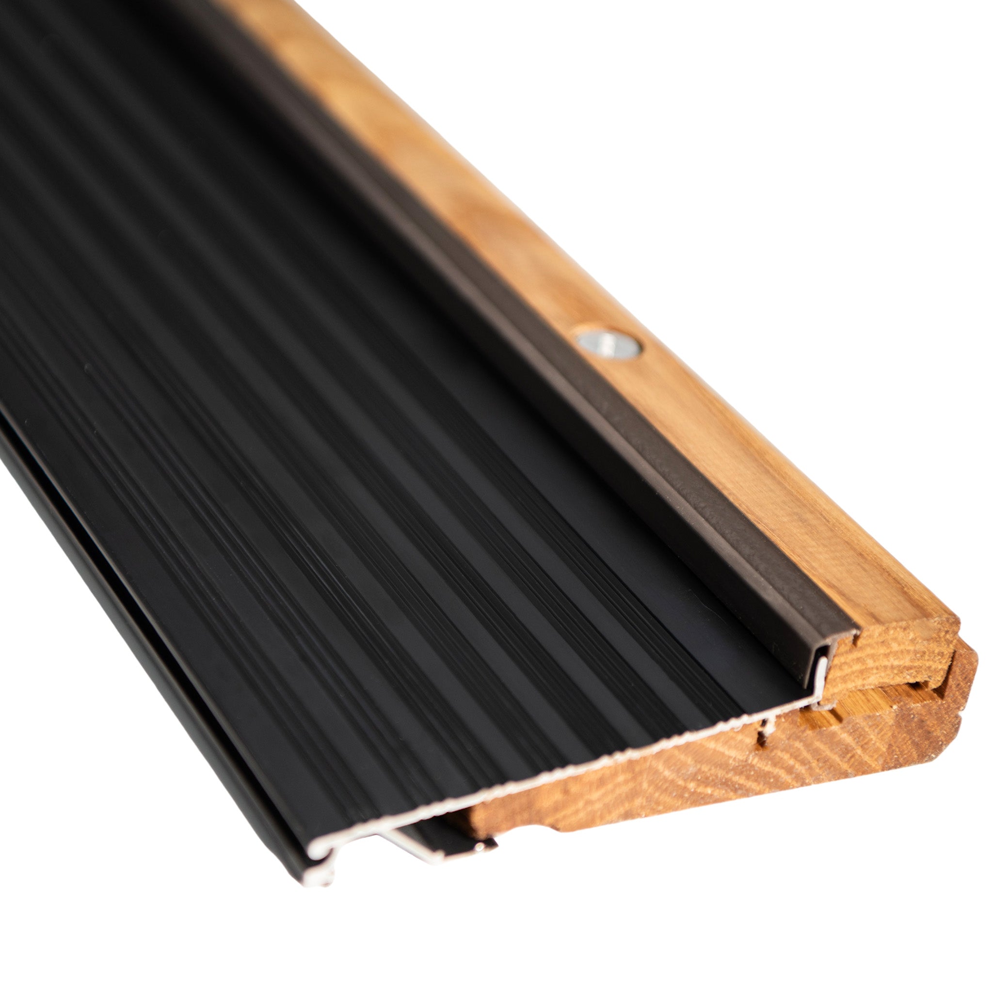 Thresholds (or sills) sit underneath your door, direct water away from your home, and work together with a door sweep to seal the bottom of your entryway against pests and drafts.