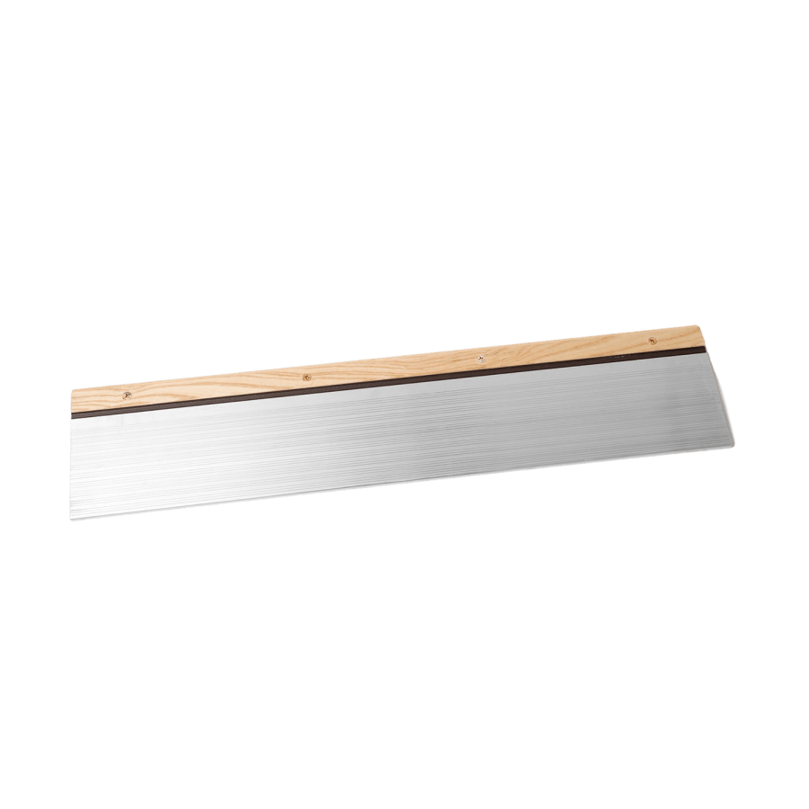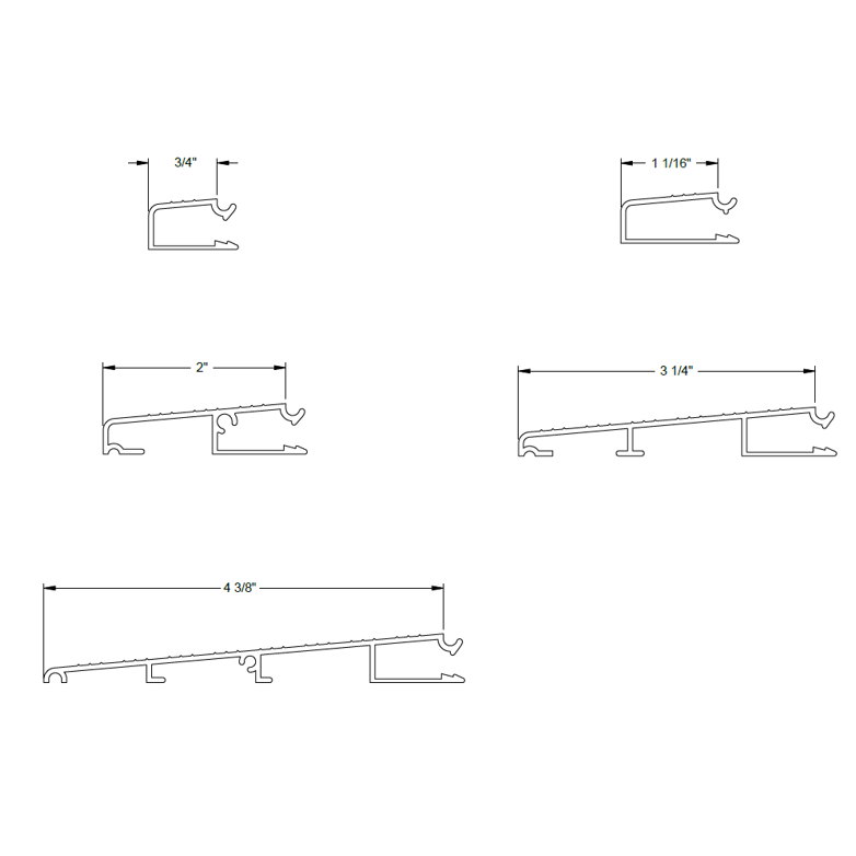 We offer standard 6" depth thresholds and extended 8" thresholds. All thresholds are made of high quality wood/composite and high grade aluminum. Thresholds are 1 1/8" tall and adjustable to seal tightly against your sweep.