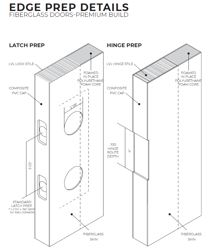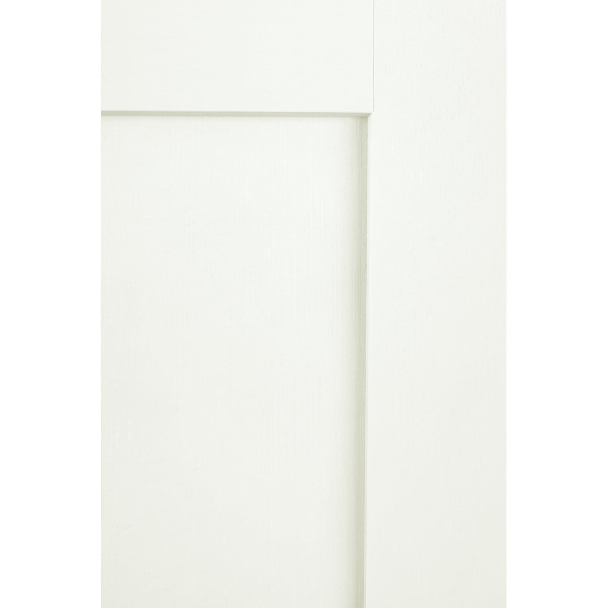 The lower panel features a flat Shaker-style profile with crisp, square edges that create subtle shadow lines without ornate detailing. This minimalist profile delivers a modern architectural look while preserving the durability and low-maintenance benefits of fiberglass construction.