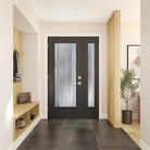 Chinchilla offers a soft, rippling texture with curved, organic movement that shimmers as light passes through. The result is a dynamic, understated look that provides a sense of depth and gentle visual distortion. Privacy is high with a 4/5 rating, offering an ideal blend of light and obscurity for front entries and sidelights.