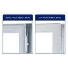Comes standard with high quality polycarbonate and ABS plastic blend (PC/ABS) frames. These are "High Heat" frames rated up to 200°F and are ideal if your door faces the sun or is behind a storm door that traps heat. Frames can be painted or stained without a primer. They can also be left white unfinished and are "maintenance free" meaning they won't crack or discolor even without paint or stain. More on finishing door glass frames